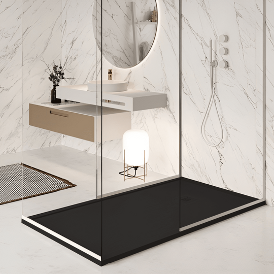 Receveur de douche extra plat DEKOR en résine finition marbre noir - Le Monde du Bain