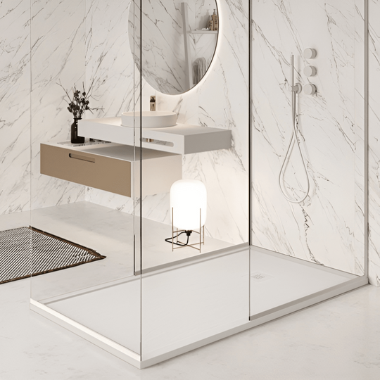 Receveur de douche extra plat finition marbre blanc - Le Monde du bain
