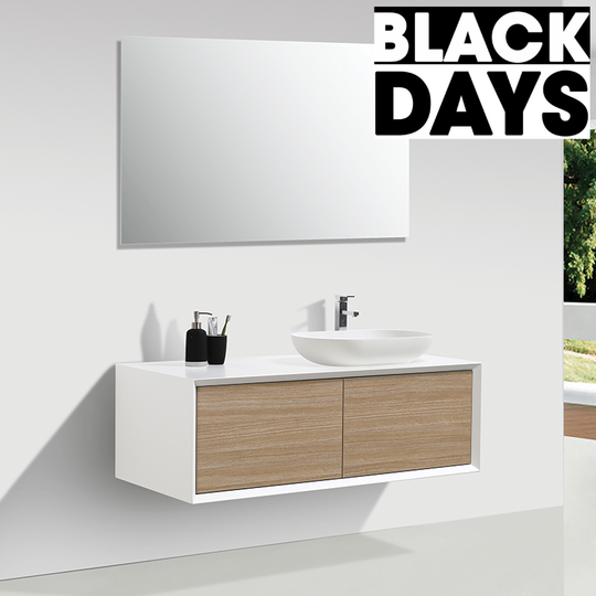 Meuble salle de bain simple vasque PALIO 90 cm, blanc / chêne clair - Le Monde du Bain