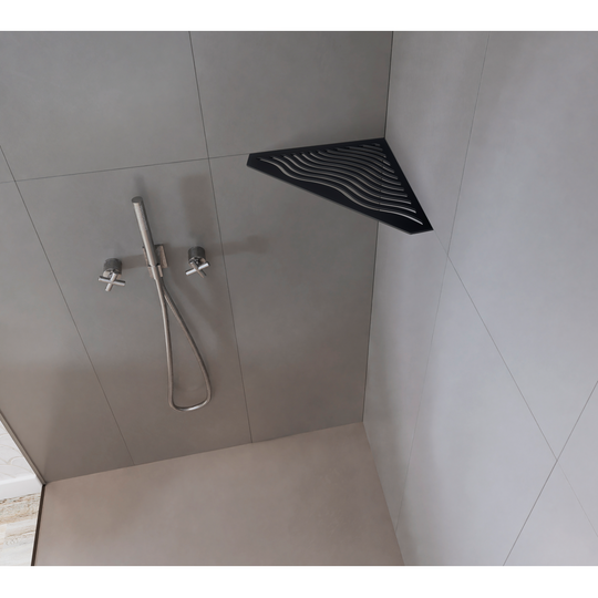 Tablette d'angle 5 côtés - motif Aqua - finition noir mat - Le Monde du Bain