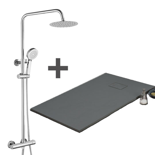 Ensembles de douche avec robinetterie thermostatique, une ou plusieurs sorties, mural ou sur pied, de style design moderne ou rétro, conçus en laiton massif ou en acier inoxydable.