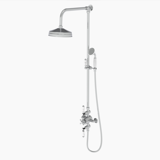 Ensembles de douche avec robinetterie thermostatique, une ou plusieurs sorties, mural ou sur pied, de style design moderne ou rétro, conçus en laiton massif ou en acier inoxydable.