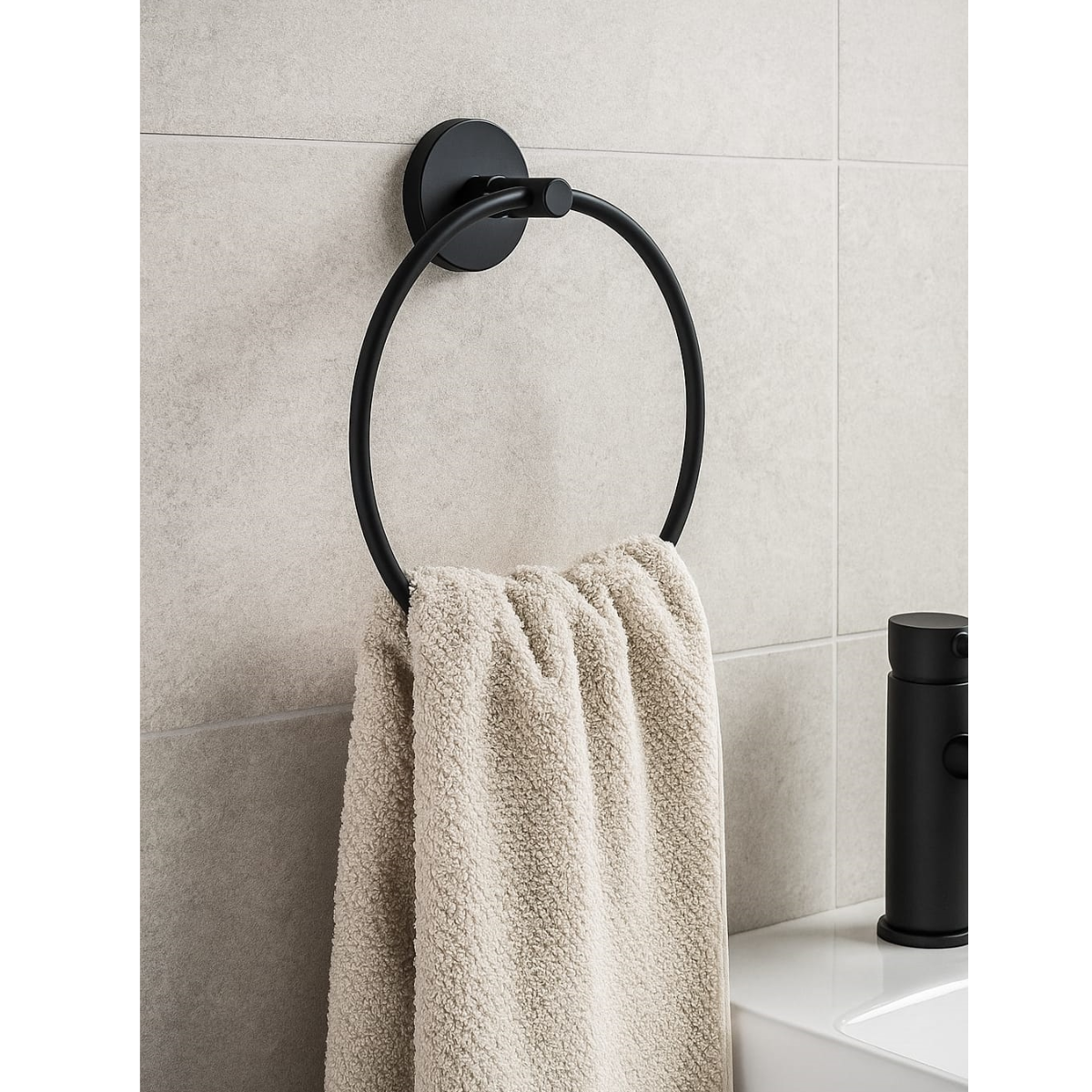 Anneau porte-serviette CIRCLE, finition noir mat.