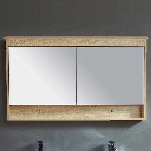 - Cette armoire de toilette peut être installée soit avec un meuble de finition mélaminé chêne, soit de façon autonome ;