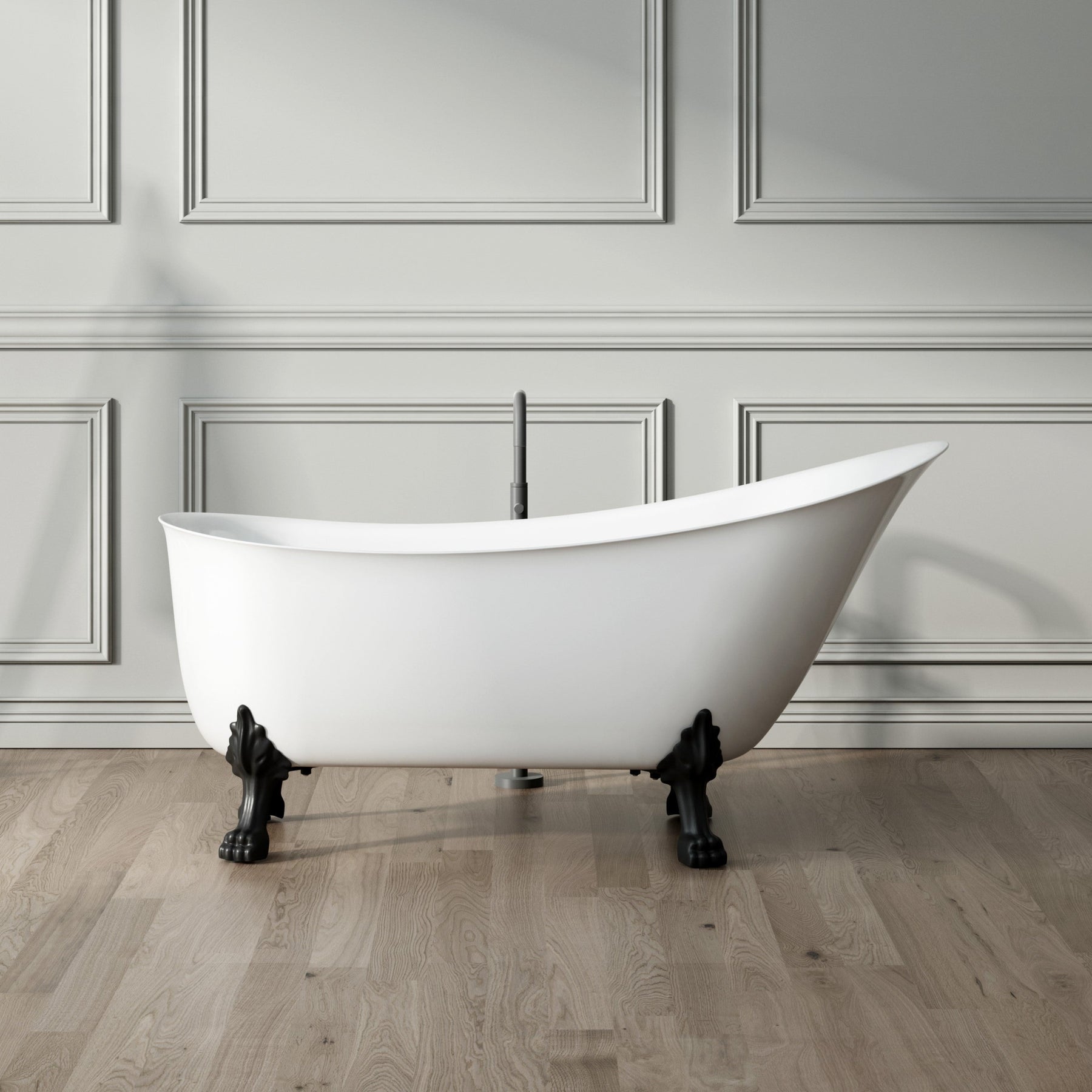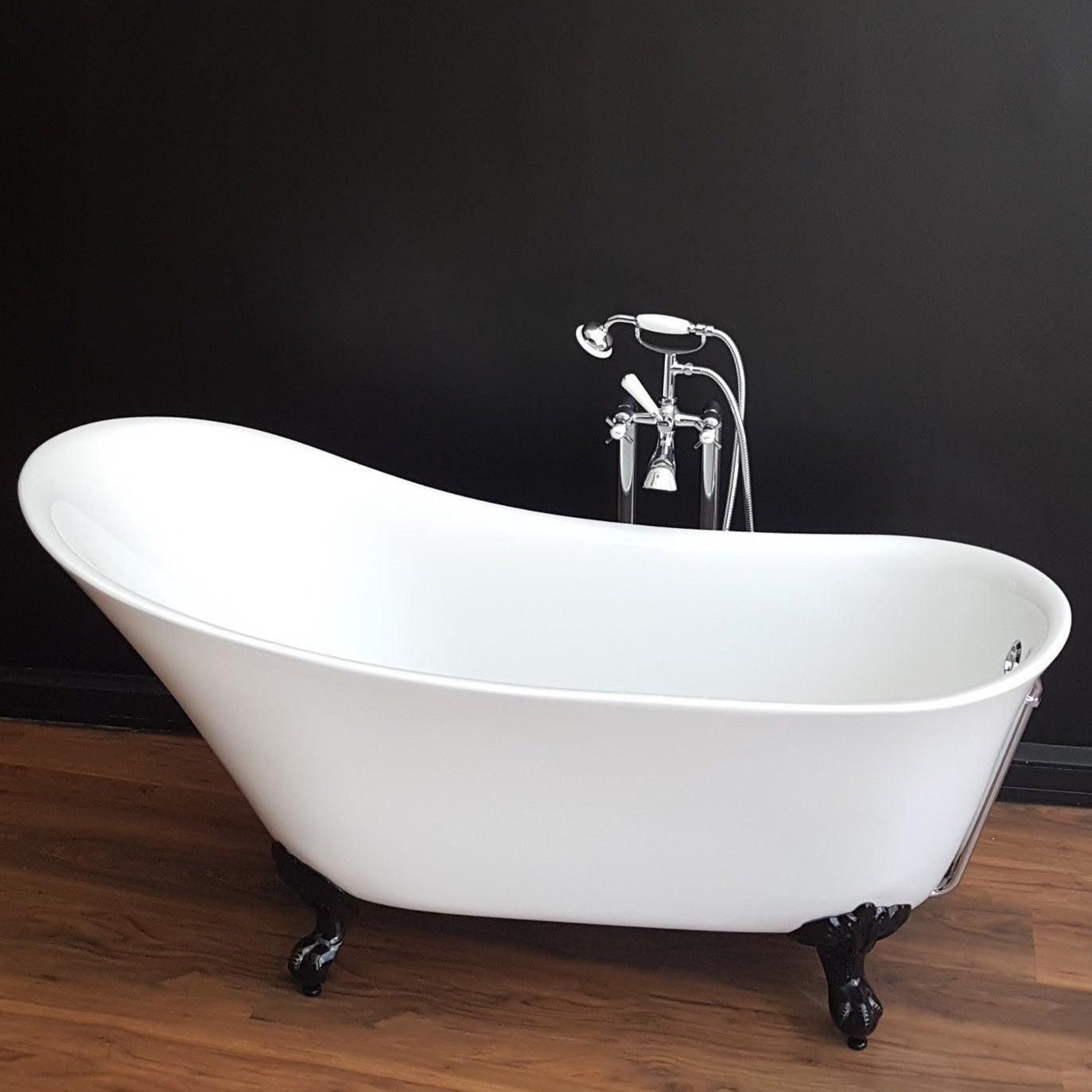 Baignoire rétro sur pieds en Resicryl® haute qualité de coloris blanc (3,8 mm), avec renforcement fibre de verre très résistant (2 à 4 mm).
