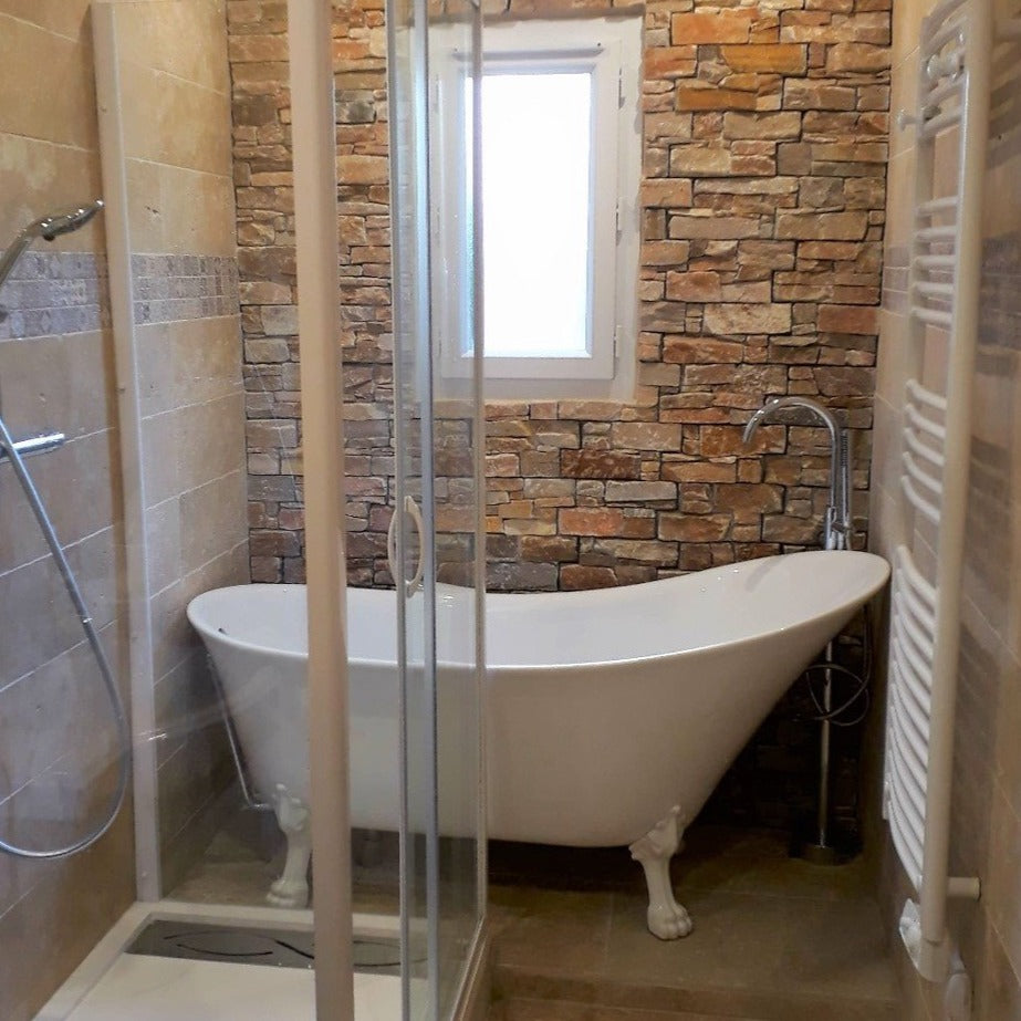 - Conditionnement : deux cartons, un pour la baignoire (Poids brut : 37 kg) et un pour les pieds (Poids brut : 4.5 kg).