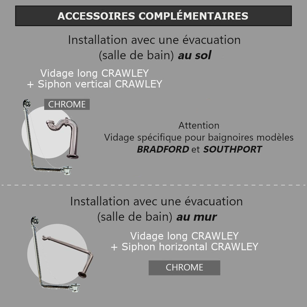 Attention : les baignoires en fonte sont livrées dans une caisse en bois dont le poids total est compris entre 150 et 250 kg. Consulter la rubrique livraison pour plus d'informations.