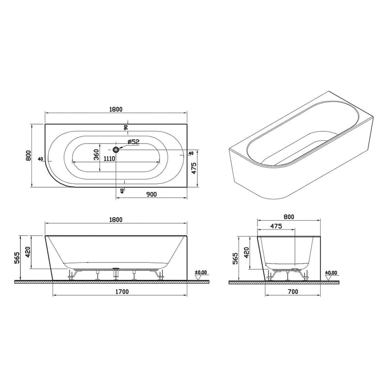 La baignoire d'angle PIANURA Valentina allie design élégant et confort généreux. Idéale pour des salles de bains élégantes et des moments de détente à la maison.