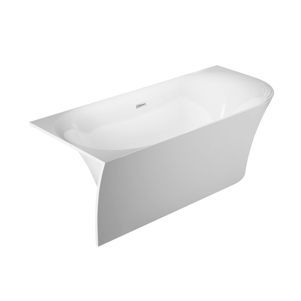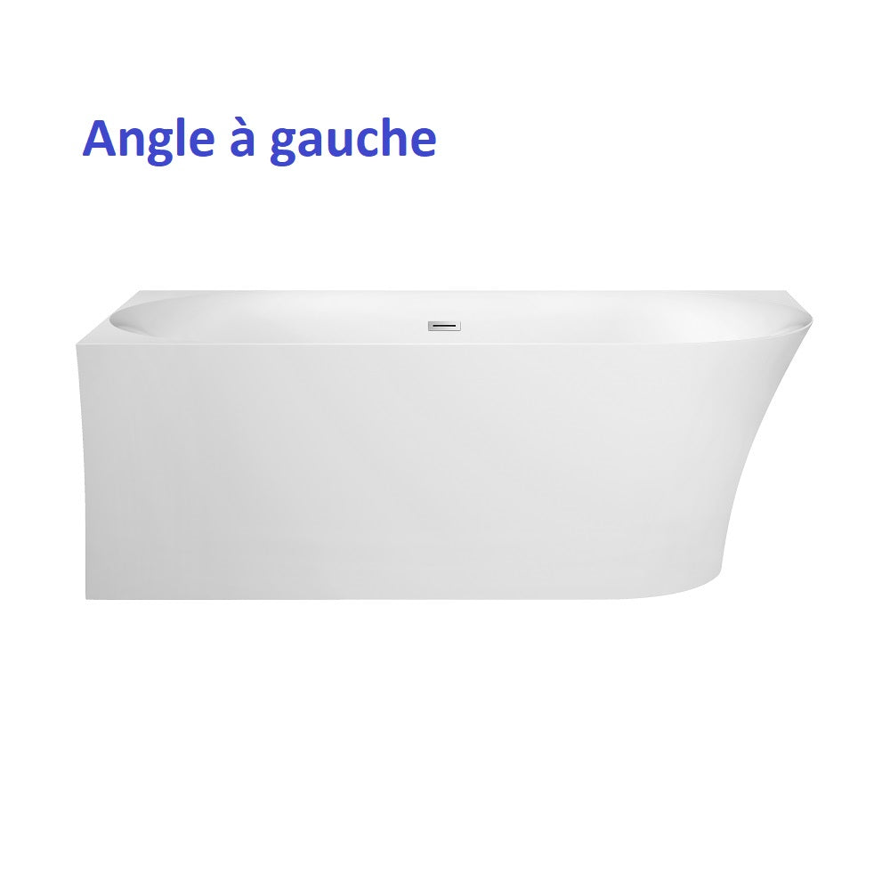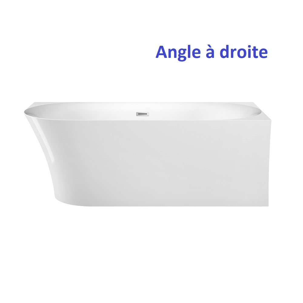 Baignoire d'angle design, de forme ovale asymétrique, en Résicryl® avec renforcement fibre de verre, tablier rigide intégré dans la coque. Longueur 170 cm. Angle à gauche ou à droite.
