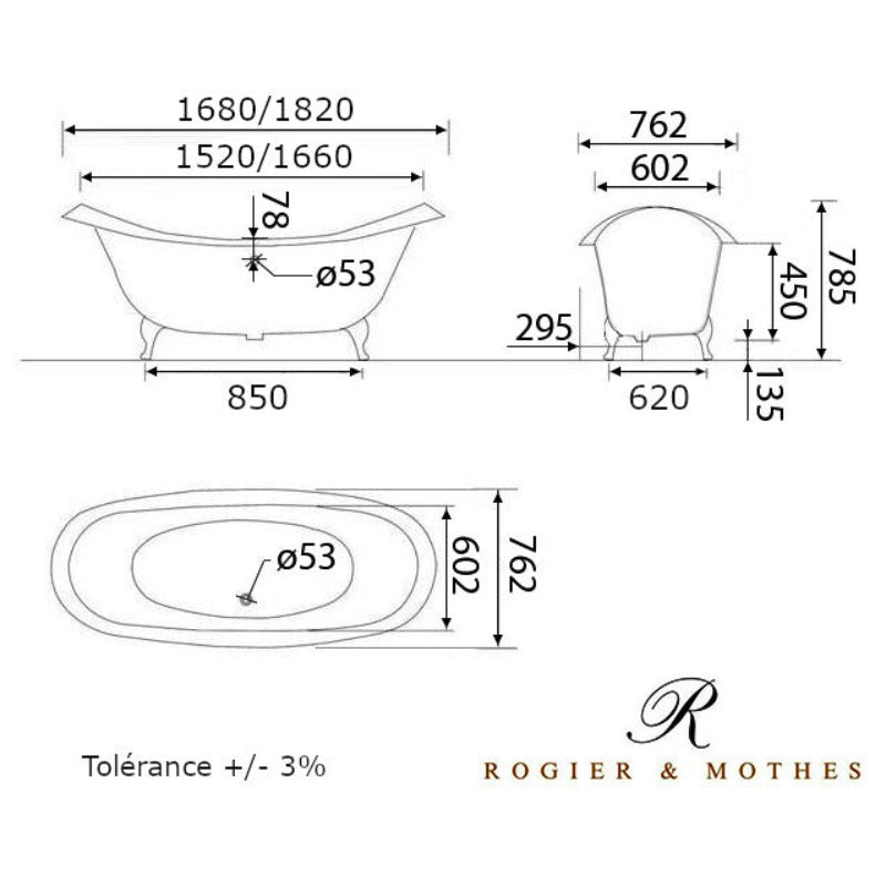 Attention : les baignoires en fonte sont livrées dans une caisse en bois dont le poids total est compris entre 150 et 250 kg. Consulter la rubrique livraison pour plus d'informations.