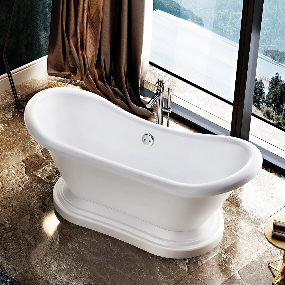 Baignoire de style bateau, montée sur socle, coloris blanc.