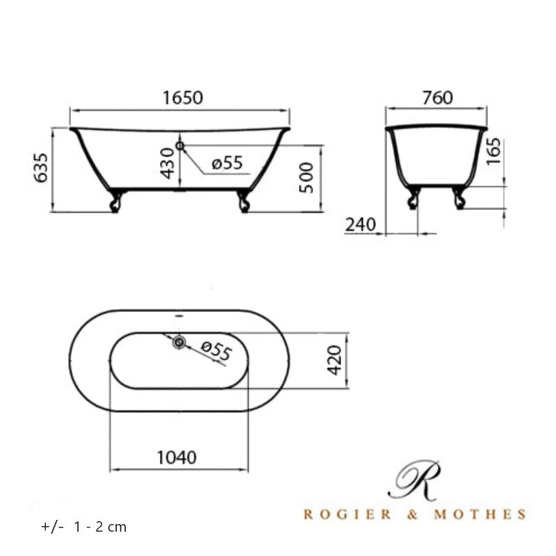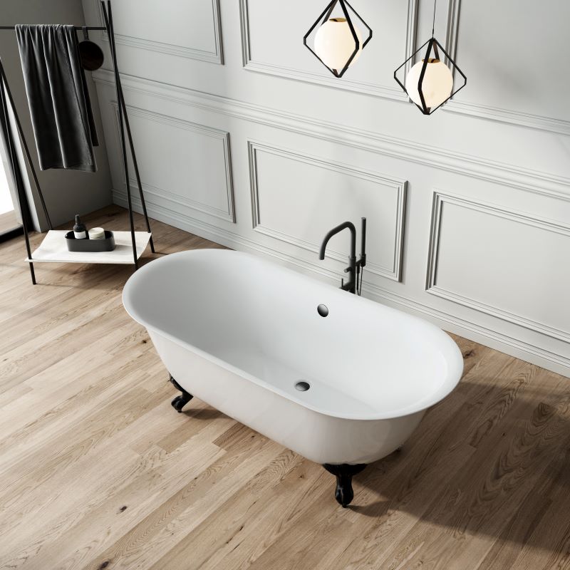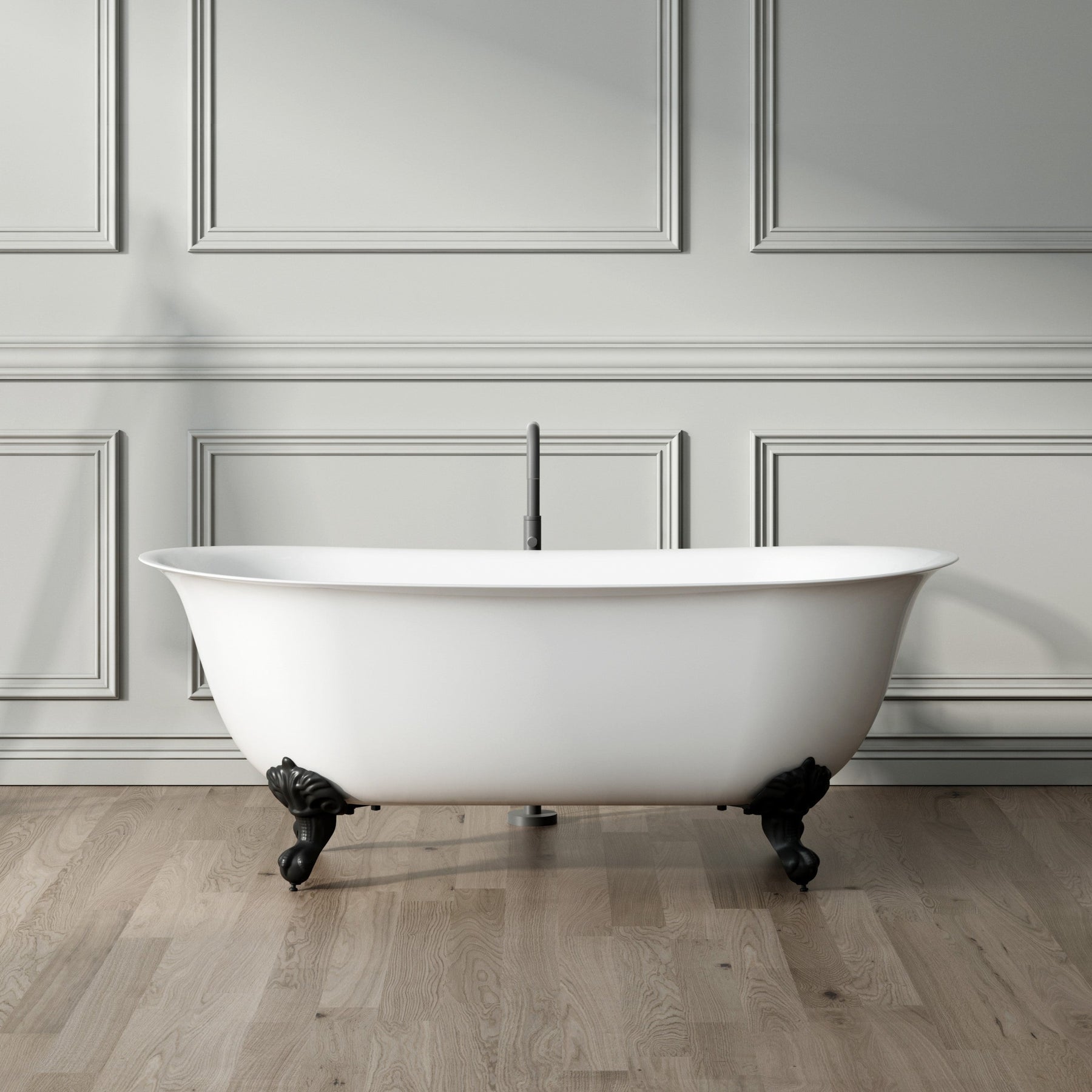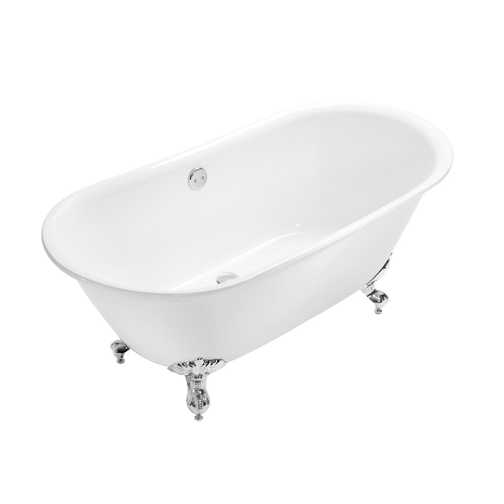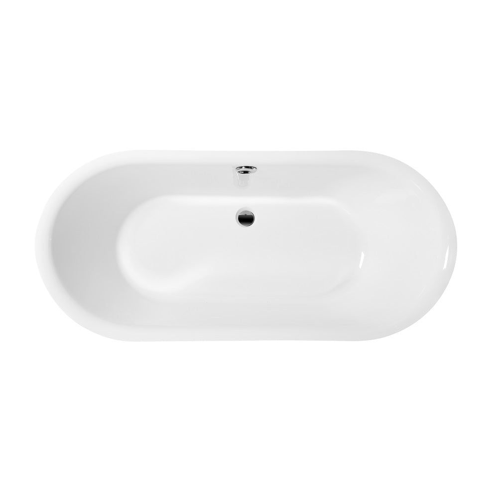 Baignoire îlot rétro sur pieds en Resicryl® avec un rebord très fin et très esthétique. Longueur 165 cm.