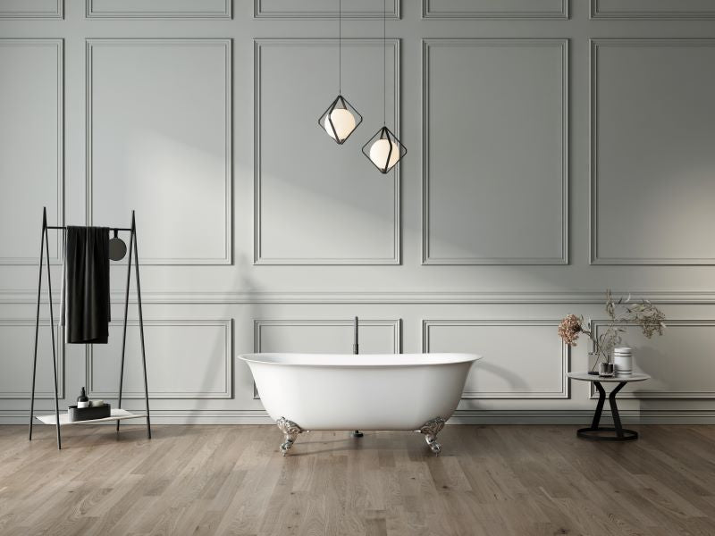 - Conditionnement : deux cartons, un pour la baignoire (Poids brut : 35 kg) et un pour les pieds (Poids brut : 4.5 kg).