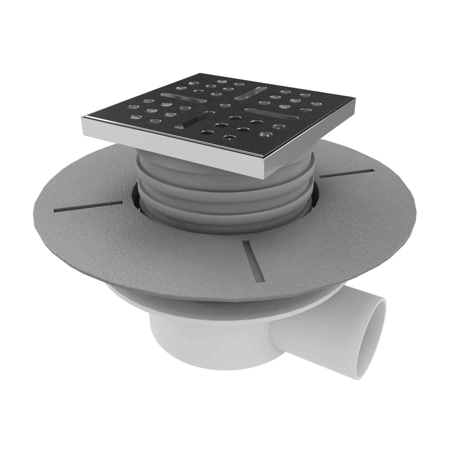 Bonde horizontale pour receveurs de douche à carreler avec grille en acier inoxydable.