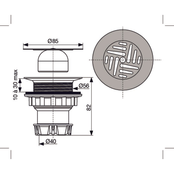 Pour un produit équivalent avec évacuation standard Ø90m, veuillez sélectionner la Bonde verticale VALENTIN pour receveurs de douche