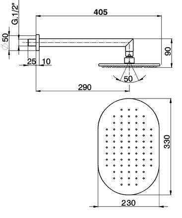 Pomme de douche ovale de grand diamètre 23x33 cm en acier Easy Clean.