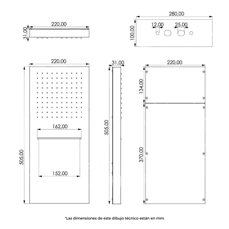 - Distance de fixation murale : 12,5 cm