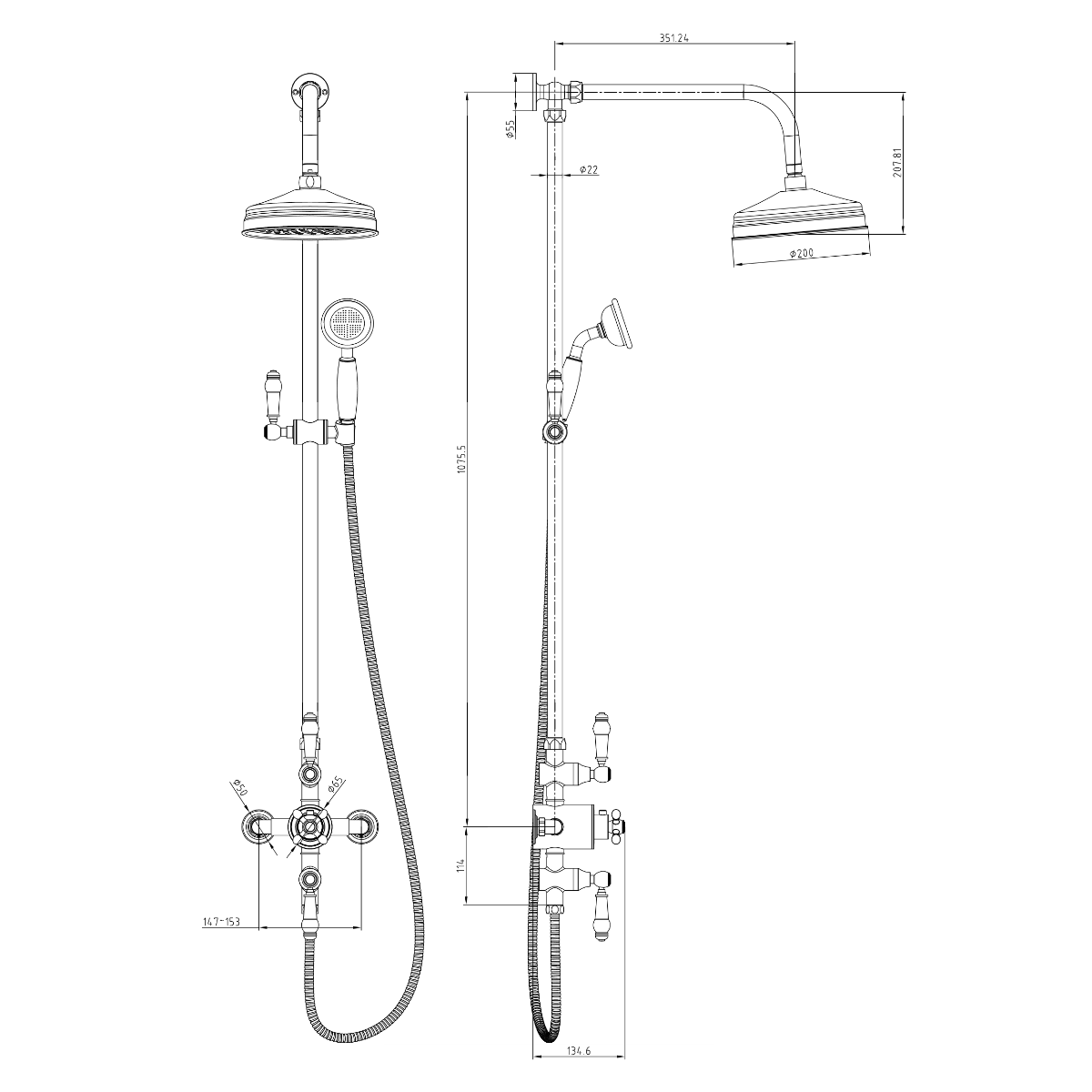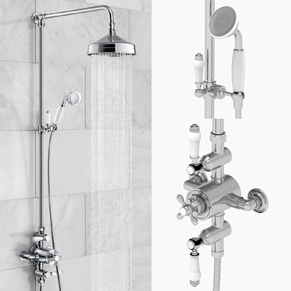 Ensemble de douche thermostatique mural de style traditionnel et rétro, comprenant :
