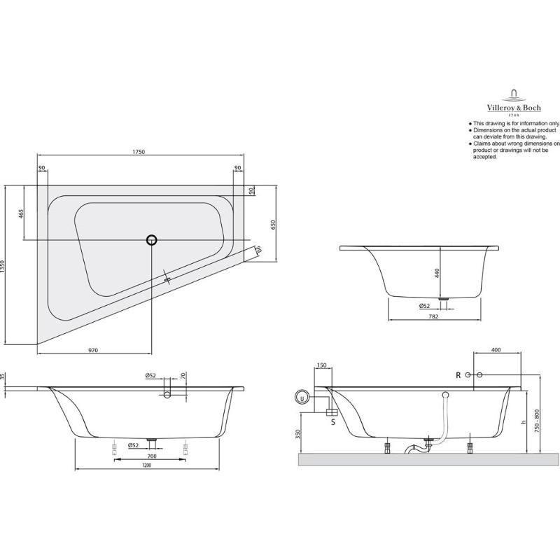 La baignoire Loop & Friends de Villeroy & Boch en 175 x 135 cm, coin gauche, offre un design moderne et un confort généreux.