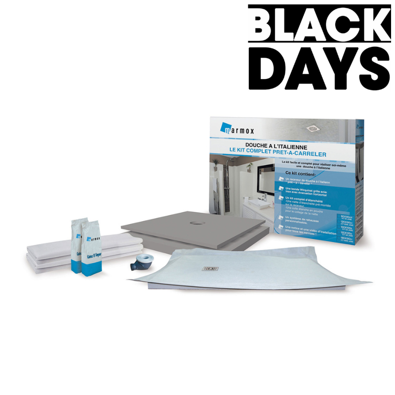 - Receveur à carreler FLATBOARD 4 pentes avec natte étanche et siphon ultra-plat