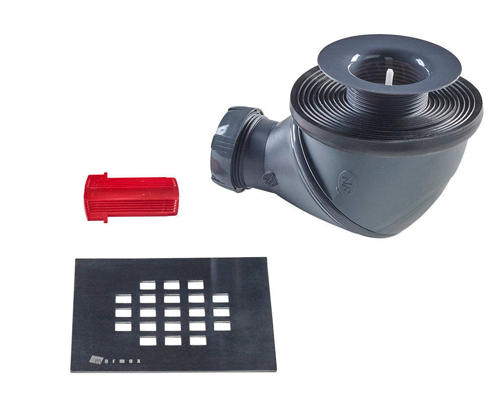 Bonde de douche 360 ° incluse, s'adaptant aux évacuations verticales ou inclinées. Celle-ci peut être remplacée par une bonde ultra-plate sur demande spécifique.