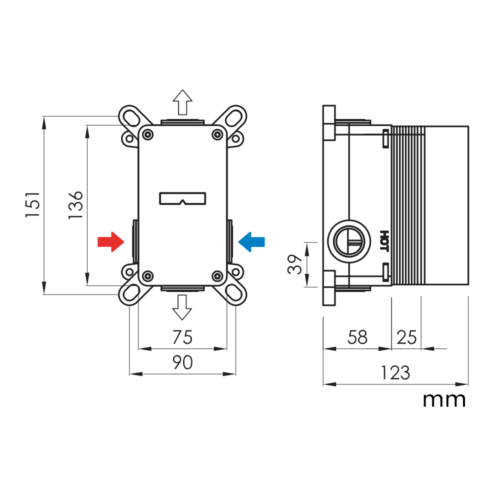 - MISE À JOUR RÉCENTE : en raison de dernières normes de l'Union Européenne, un marquage chaud/froid avec les traits "rouge et bleu" peut être présent sur les manettes des mitigeurs. Merci de nous contacter au préalable si vous souhaitez une version spécifique (avec ou sans trait de couleur).