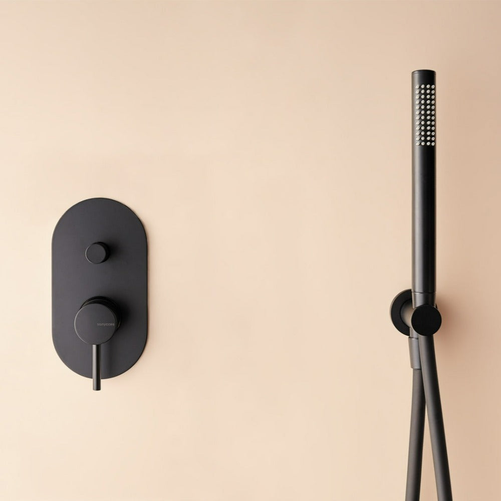 Kit mitigeur de douche à encastrer, de style moderne, pour salle de bain design.