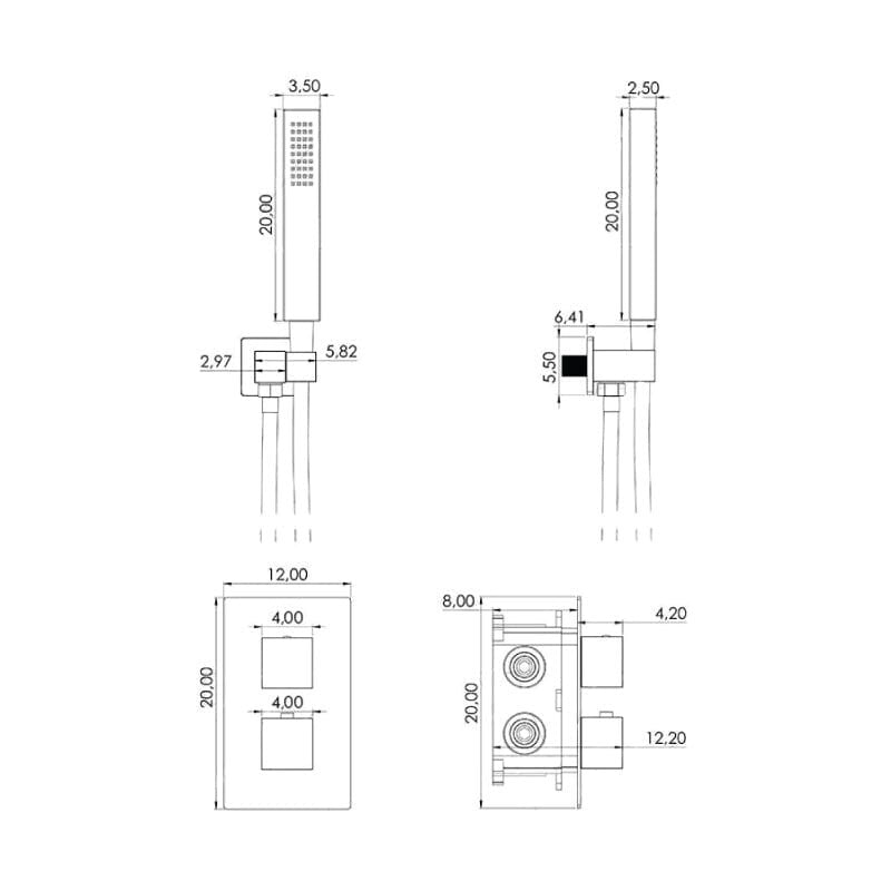 Set de douche thermostatique encastrable TILSO de finition chromée.