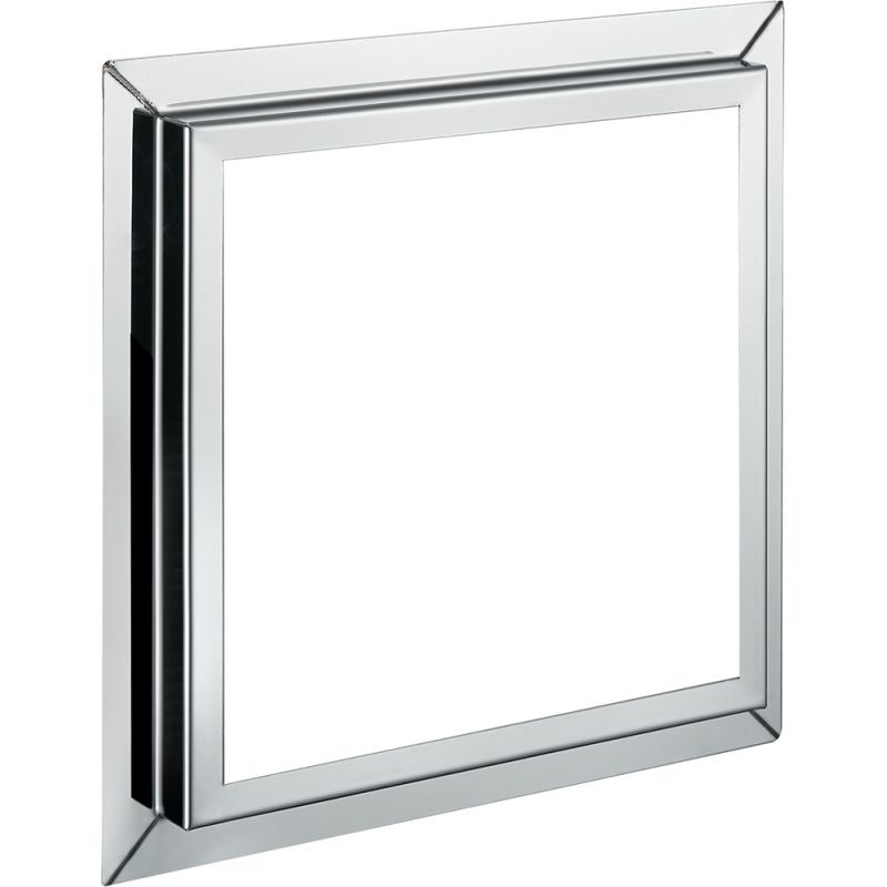 Une tête de douche en acier inoxydable, carrée de côté 30 cm, extra-plat et anti-calcaire ; elle est à encastrer à ras du plafond ;