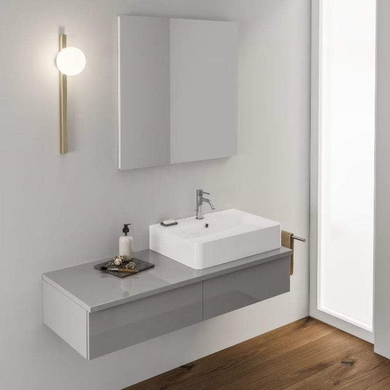 La vasque à poser Kronenbach Cube sur plan de 60 x 42 cm combine design moderne et fonctionnalité.