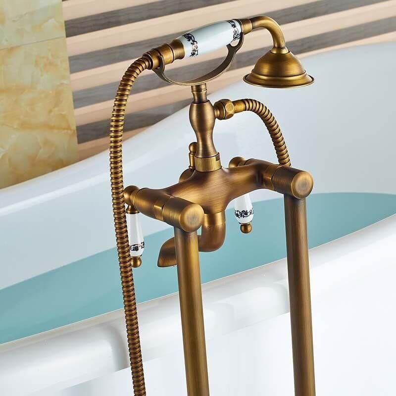 - Ce robinet baignoire est livré avec une douchette à main ancienne, un support de douchette "téléphone" et un flexible de douche double agrafage de longueur 150 cm.
