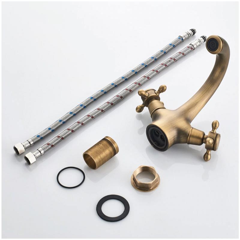 Robinet mélangeur pour lavabo, finition dorée, style traditionnel et ancien.