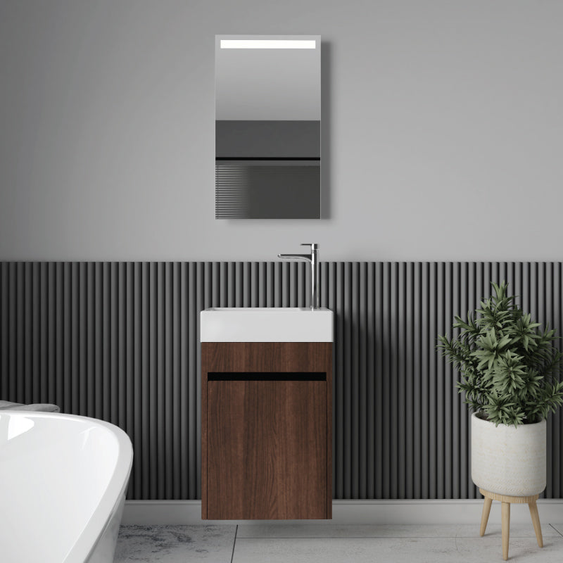 Ensemble meuble de salle de bain suspendu au design moderne et minimaliste et aux lignes sobres et épurées.