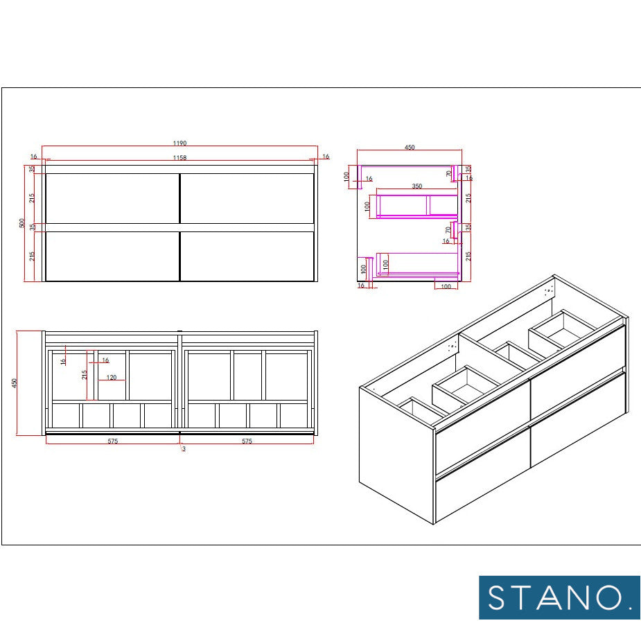 - conditionnement : deux cartons, un pour le plan double-vasque (poids brut : 16 kg) et un pour le meuble bas (poids brut : 34 kg) ;