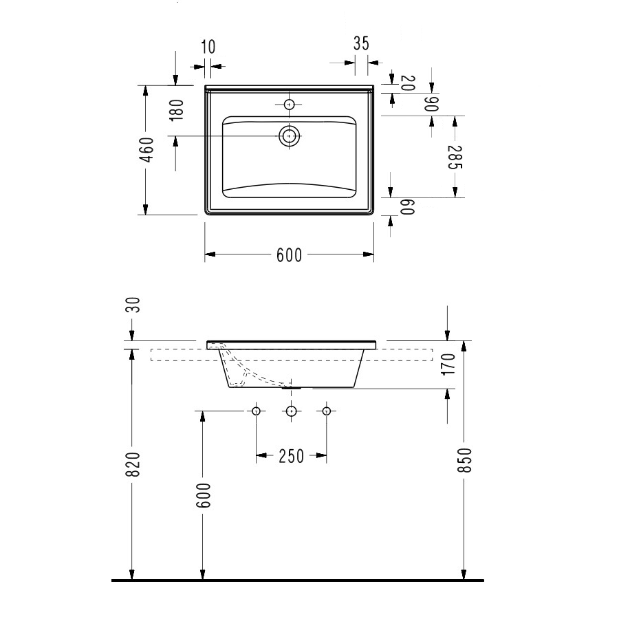 - la vasque comporte un trou de robinetterie pré-percé en atelier ;