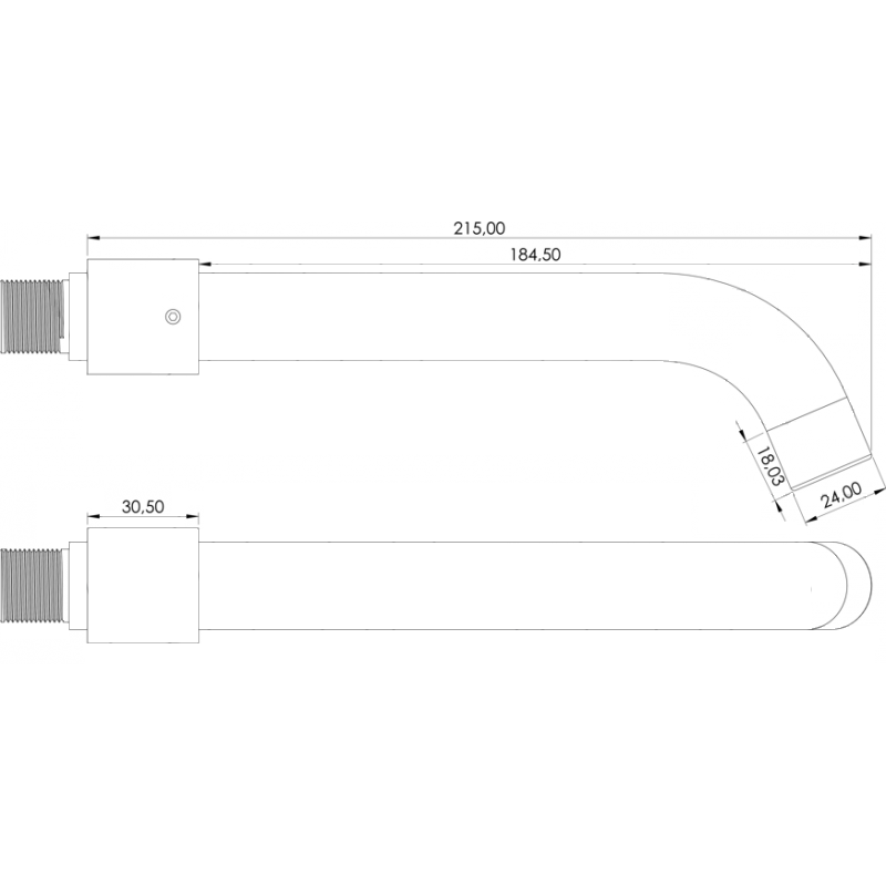 Dimensions : Robinet en apparent 22,07 cm. Commande en apparent 10,80 cm x 4,45 cm sur 7,05 cm de profondeur. Encastrement 17,55 cm x 7,25 cm x 4,60 cm.