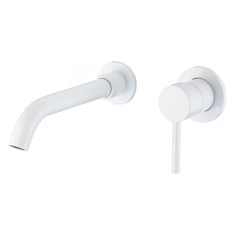 Robinet mitigeur encastré 2 trous pour lavabo et vasque, de style design et finition blanche.