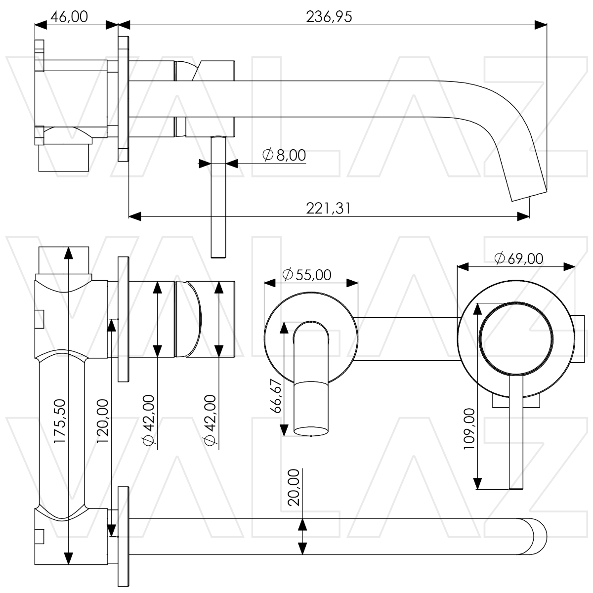 - Livré avec un corps d'encastrement en laiton (sans boitier).