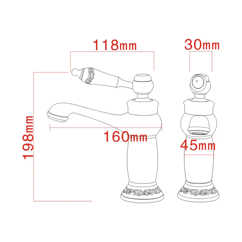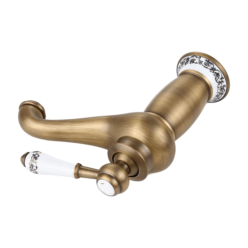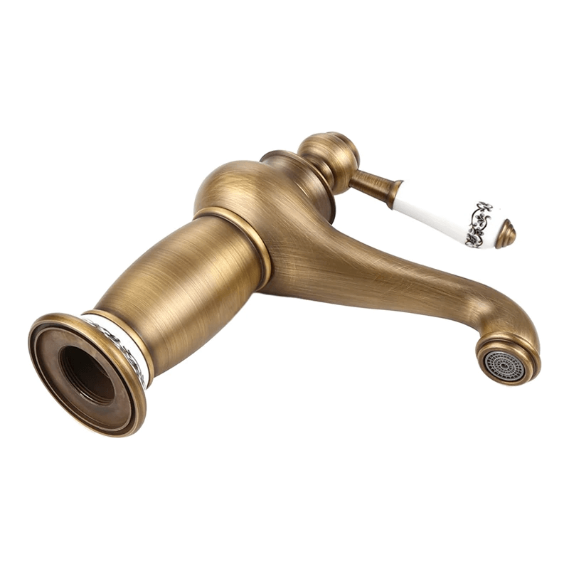 Robinet mitigeur pour lavabo, finition dorée, style traditionnel et ancien.