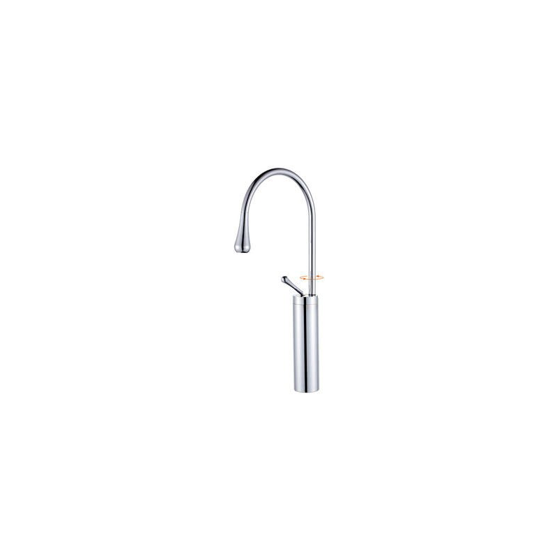 Robinet mitigeur rehaussé pour lavabo ou vasque, finition chromée et bec pivotant.