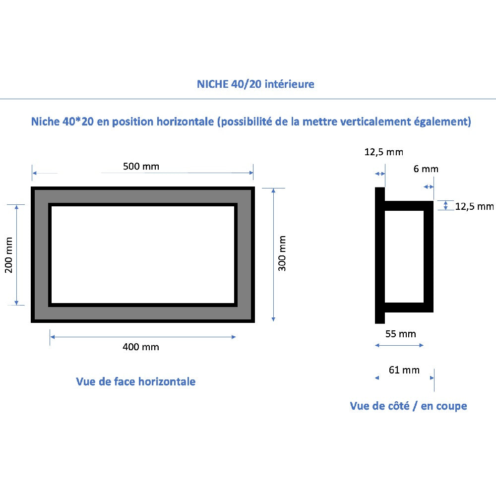Niche à carreler étanche pour douche - Format intérieur 40 x 20 cm - 5,5 cm de profondeur.