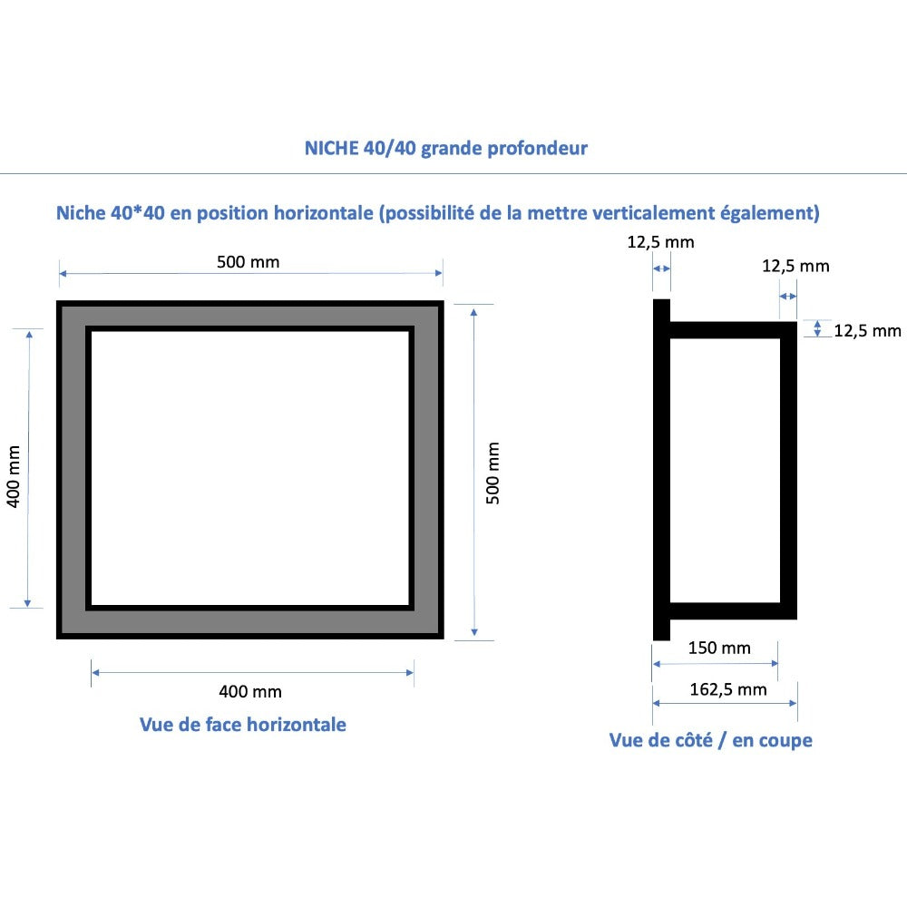 Niche à carreler étanche pour douche - Format intérieur 40 x 40 cm - 15 cm de profondeur.