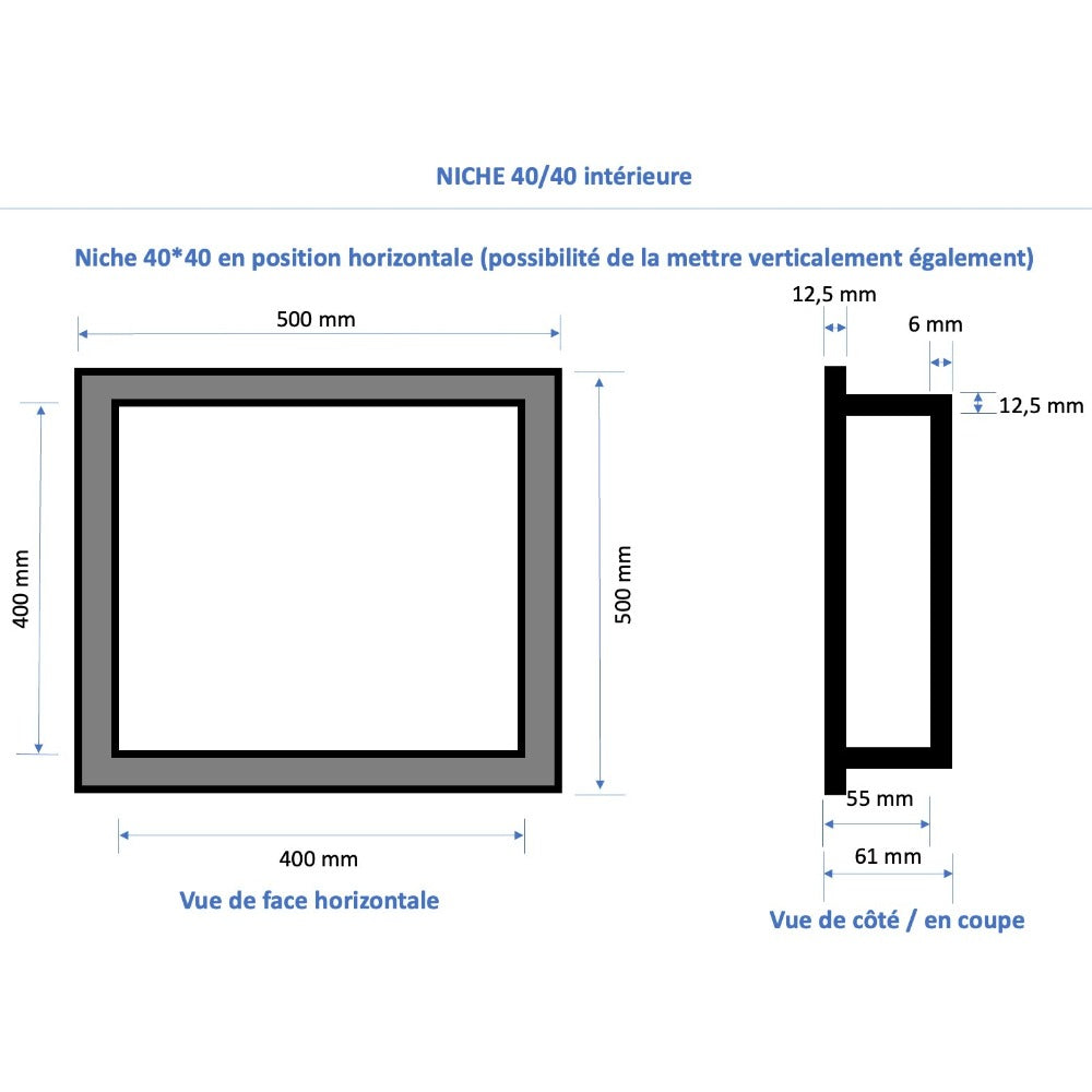Niche à carreler étanche pour douche - Format intérieur 40 x 40 cm - 5,5 cm de profondeur.