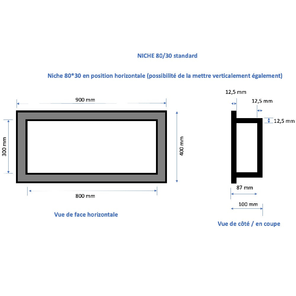 Niche à carreler étanche pour douche - Format intérieur 80 x 30 cm - 9 cm de profondeur.