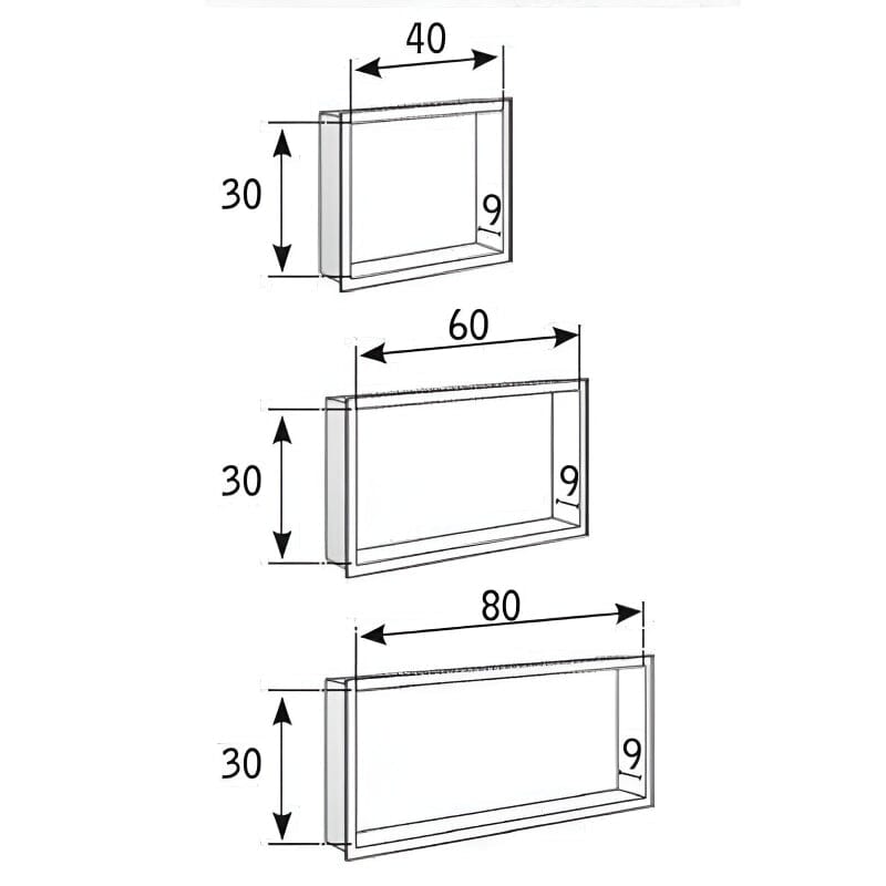 Niche de douche à encastrer étanche de finition noir mat - 40x30, 60x30 ou 80x30 cm au choix - 9 cm de profondeur.