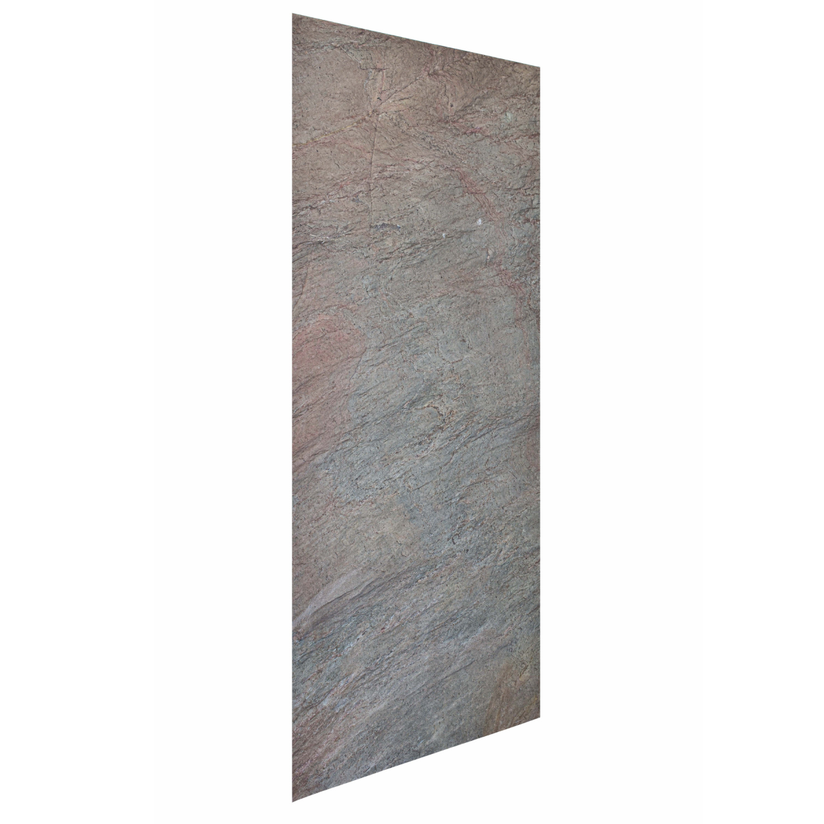 Le panneau de douche est composé d’une couche de pierre naturelle ardoise de 2 mm associée à une âme en verre cellulaire isolante, garantissant légèreté, solidité et performance thermique.