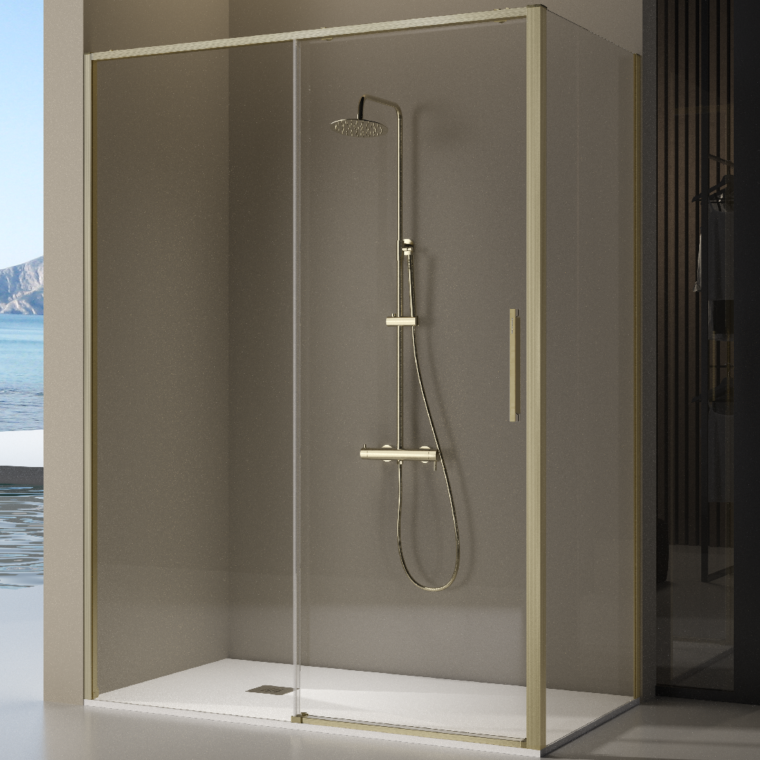 - La longueur totale de la paroi peut être modifiée de quelques centimètres en ajustant l'espace à l'intérieur du profil. Le réglage se fait lors de l'installation et permet d'absorber les petites variations de distances que votre installation peut avoir une fois le receveur de douche installé.