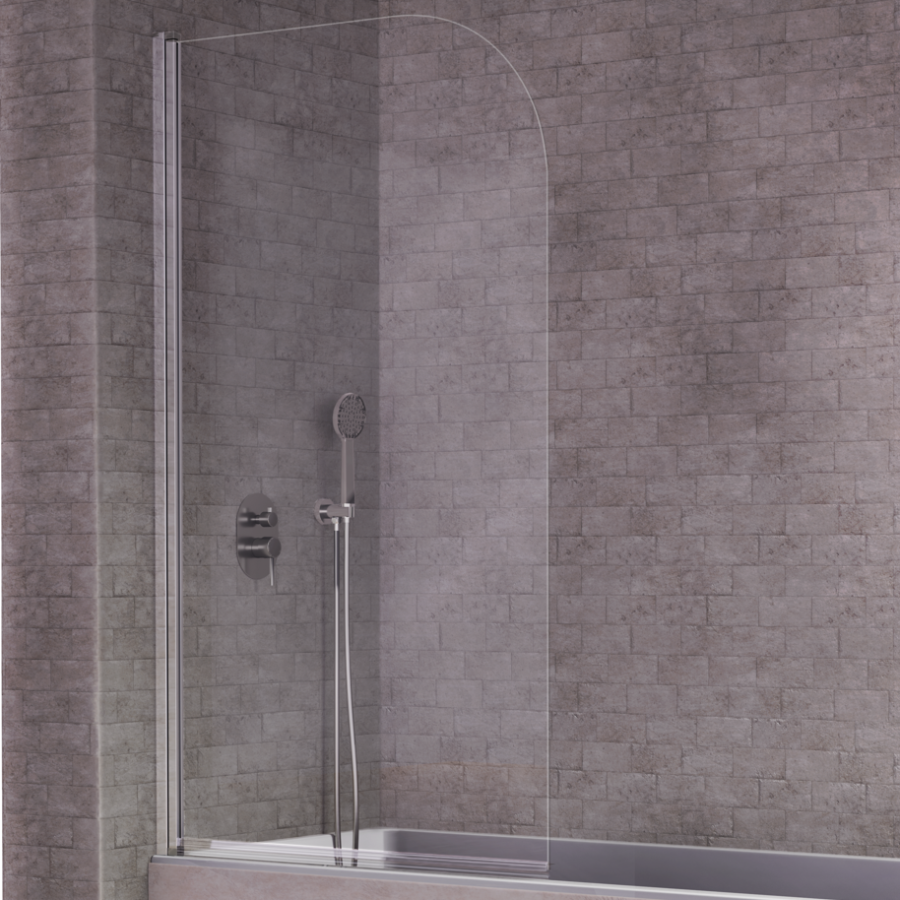 Paroi de baignoire rabattable transparente pour baignoire design en verre trempé, avec profil chromé.