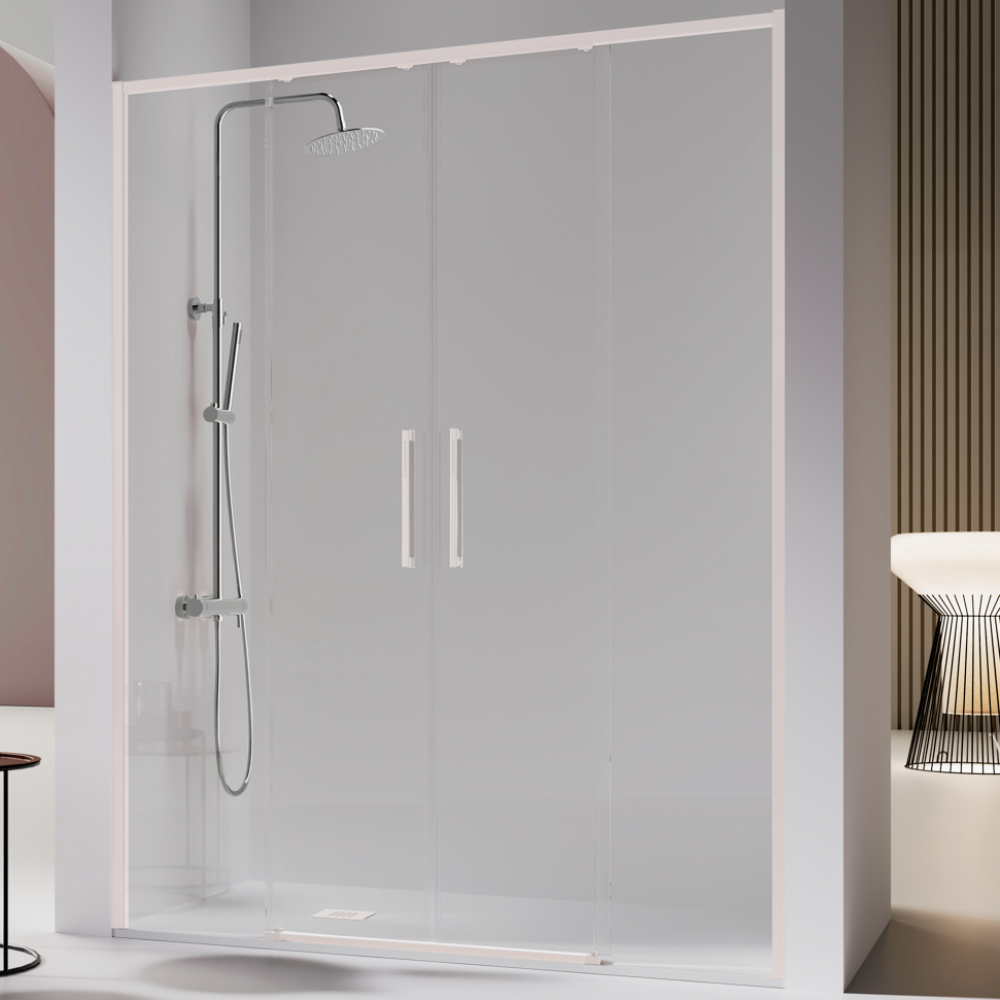 - La longueur totale de la paroi peut être modifiée d'un centimètre en ajustant l'espace à l'intérieur du profil ou la traversée de la porte. Le réglage se fait lors de l'installation et permet d'absorber les petites variations de distances que votre installation peut avoir une fois le receveur de douche installé.