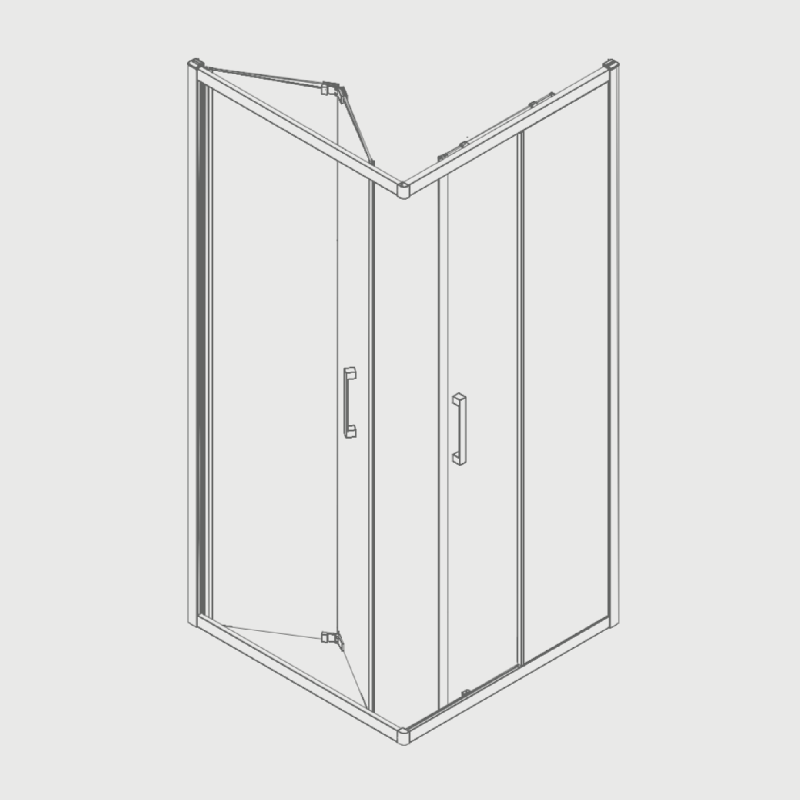 Panneau de douche avec accès en angle comprenant une porte pliante de longueur 63 à 89 cm et une porte coulissante de longueur 67 à 99 cm, modèle S300.